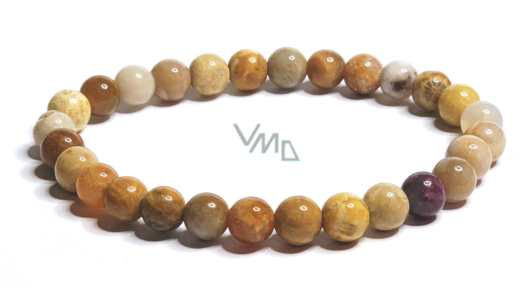 Korál fosilní Chryzanténum náramek elastický přírodní kámen, kulička 6 mm / 16 - 17 cm