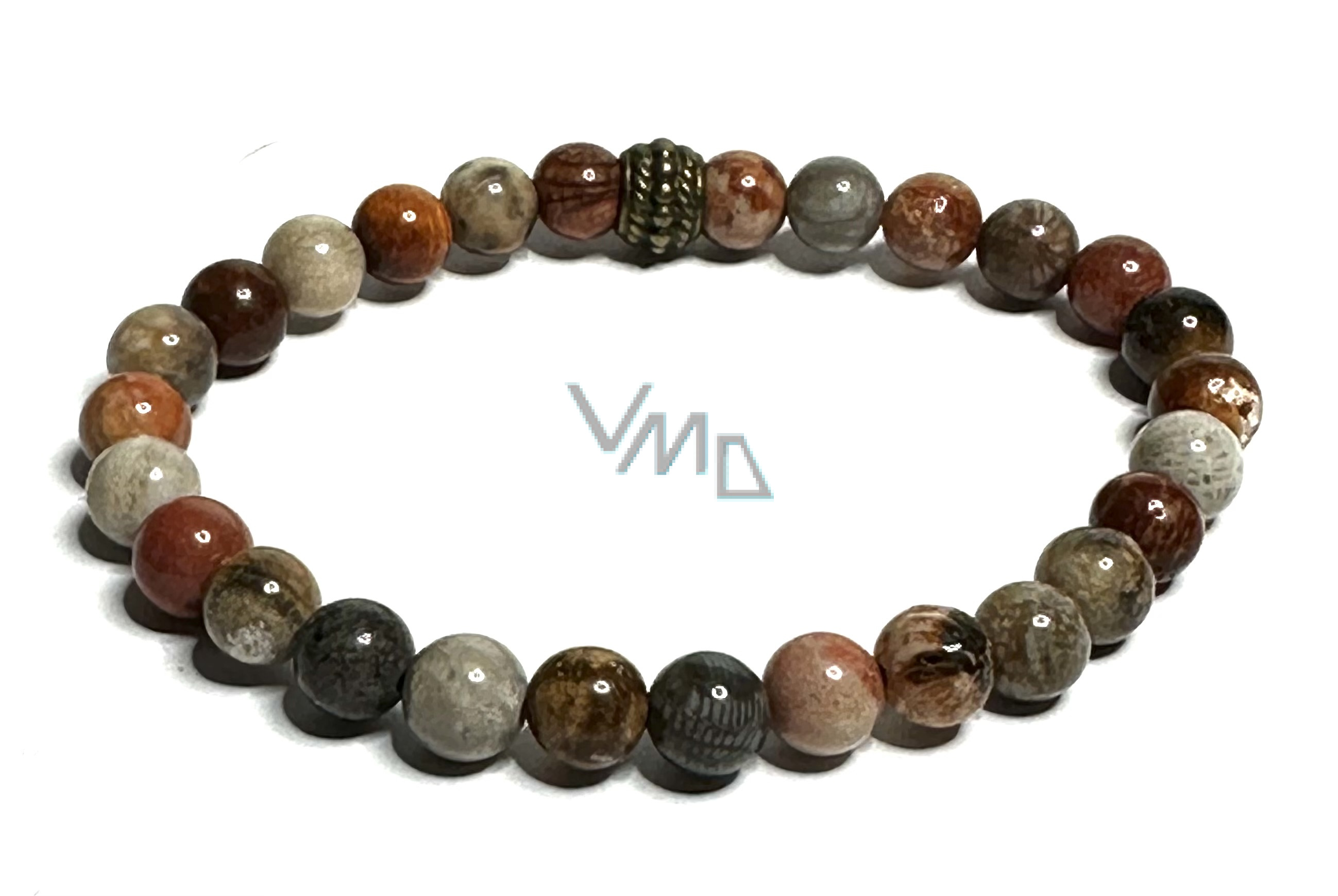 Korál zkamenělý náramek elastický přírodní, kulička 6 mm / 16 - 17 cm