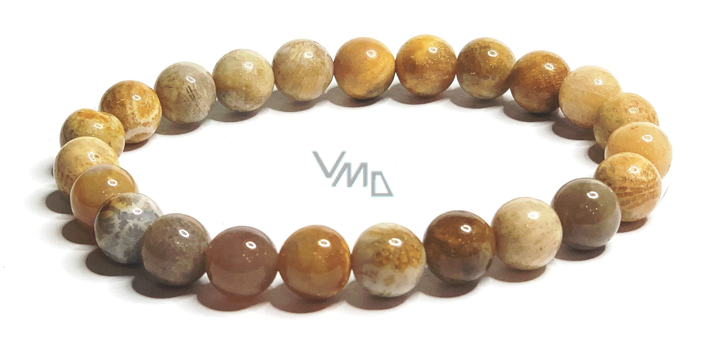 Korál fosilní Chryzanténum náramek elastický přírodní kámen, kulička 8 mm / 16 - 17 cm