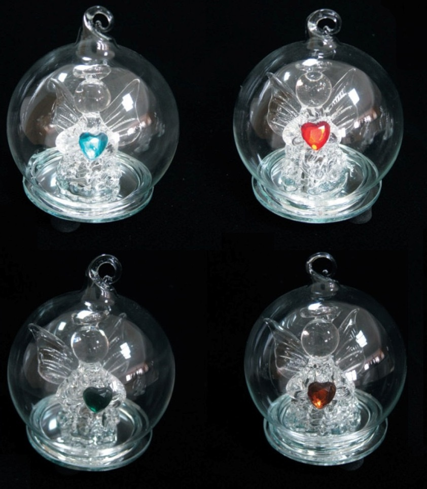 Koule skleněná s andělem svítící LED 6 cm 1 kus