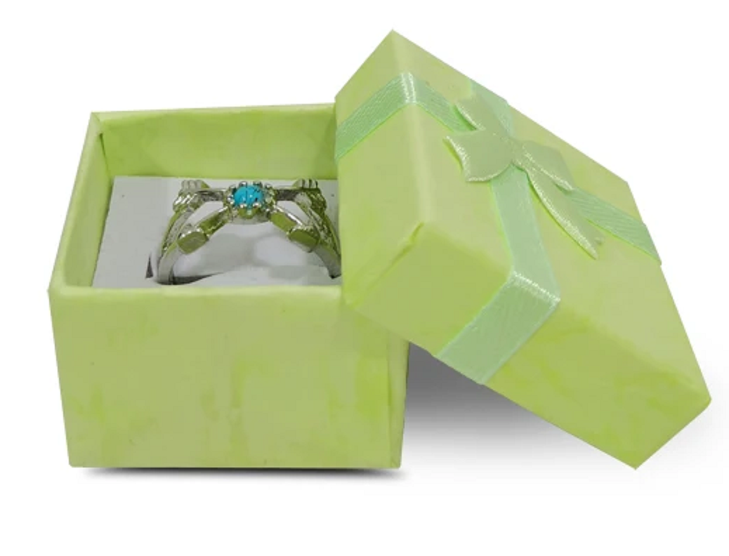 Dárková krabička s houbičkou na šperky s mašlí světle zelená 4 x 4 x 2,5 cm 1 kus