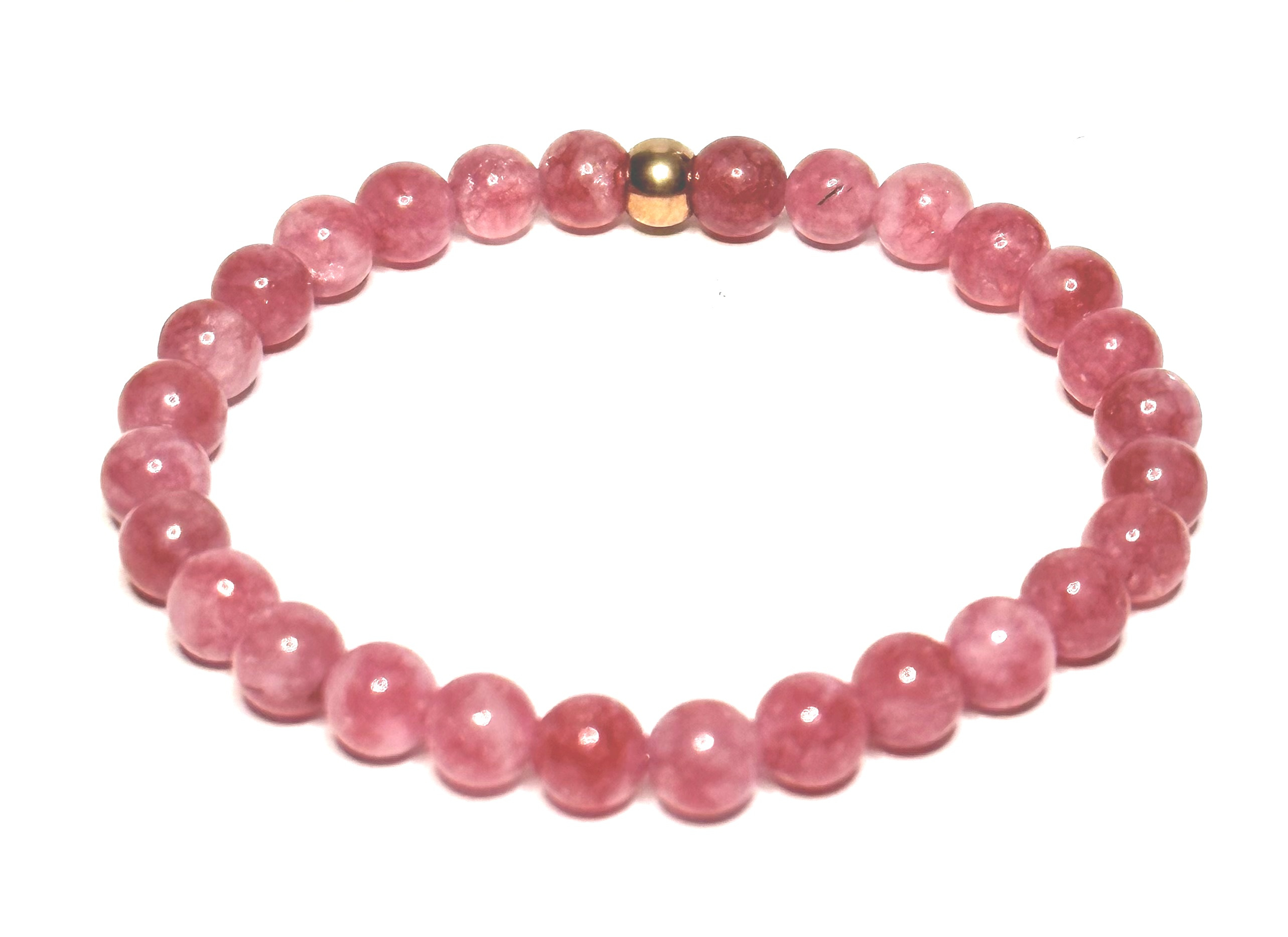 Křemen růžový / jahodový náramek elastický přírodní kámen, kulička 6 mm / 16 - 17 cm, AAA kvalita, nejdokonalejší léčitel