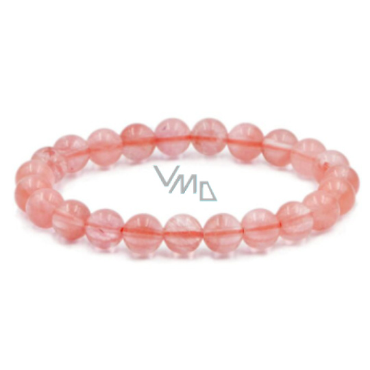 Křemen růžový / jahodový náramek elastický přírodní kámen, kulička 8 mm / 16 - 17 cm, nejdokonalejší léčitel