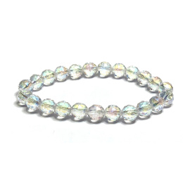 Křišťál Aqua aura andělská fazet polopokovený povrch, náramek elastický přírodní kámen, kulička 8 mm / 16 - 17 cm, kámen kamenů
