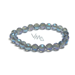 Křišťál Aqua aura modrá fazet polopokovený povrch, náramek elastický přírodní kámen, kulička 8 mm / 16 - 17 cm, kámen kamenů
