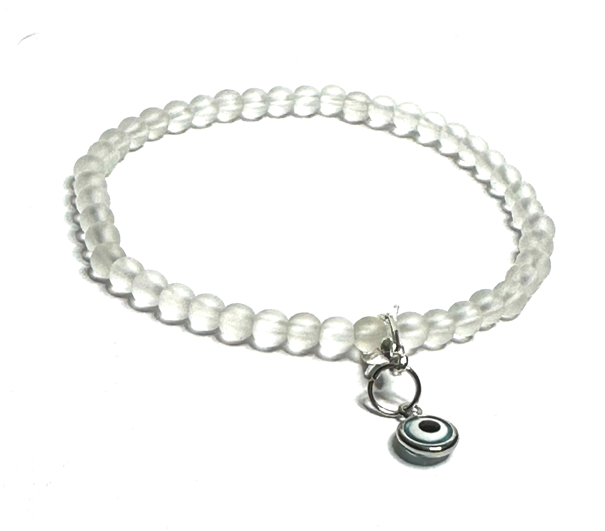 Popis Křišťál matný + Modré oko odnimatelný přívěsek, náramek elastický přírodní kámen, kulička 4 mm / 16 - 17 cm, kámen kamenů