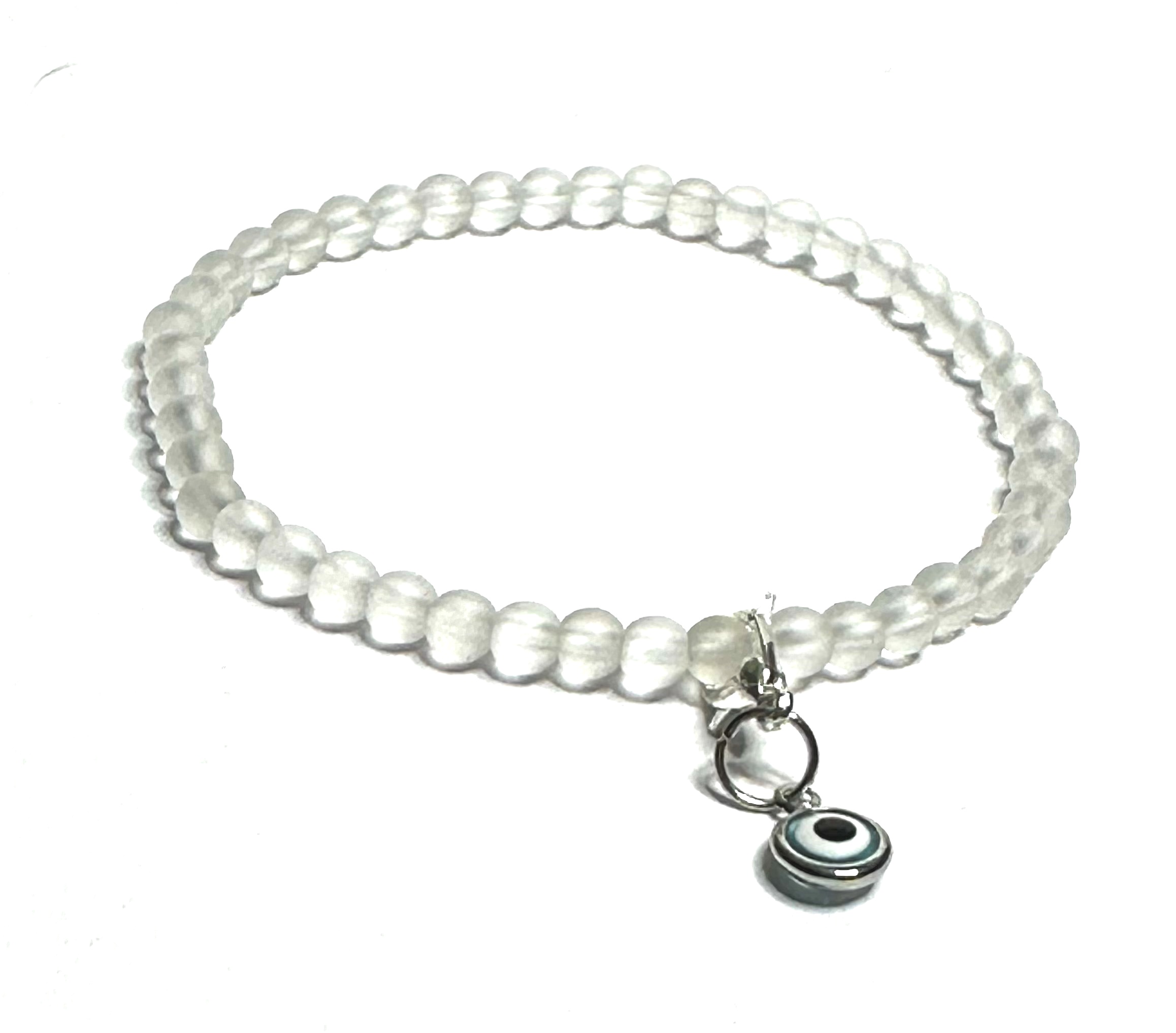 Křišťál matný + Modré oko odnimatelný přívěsek, náramek elastický přírodní kámen, kulička 4 mm / 16 - 17 cm, kámen kamenů