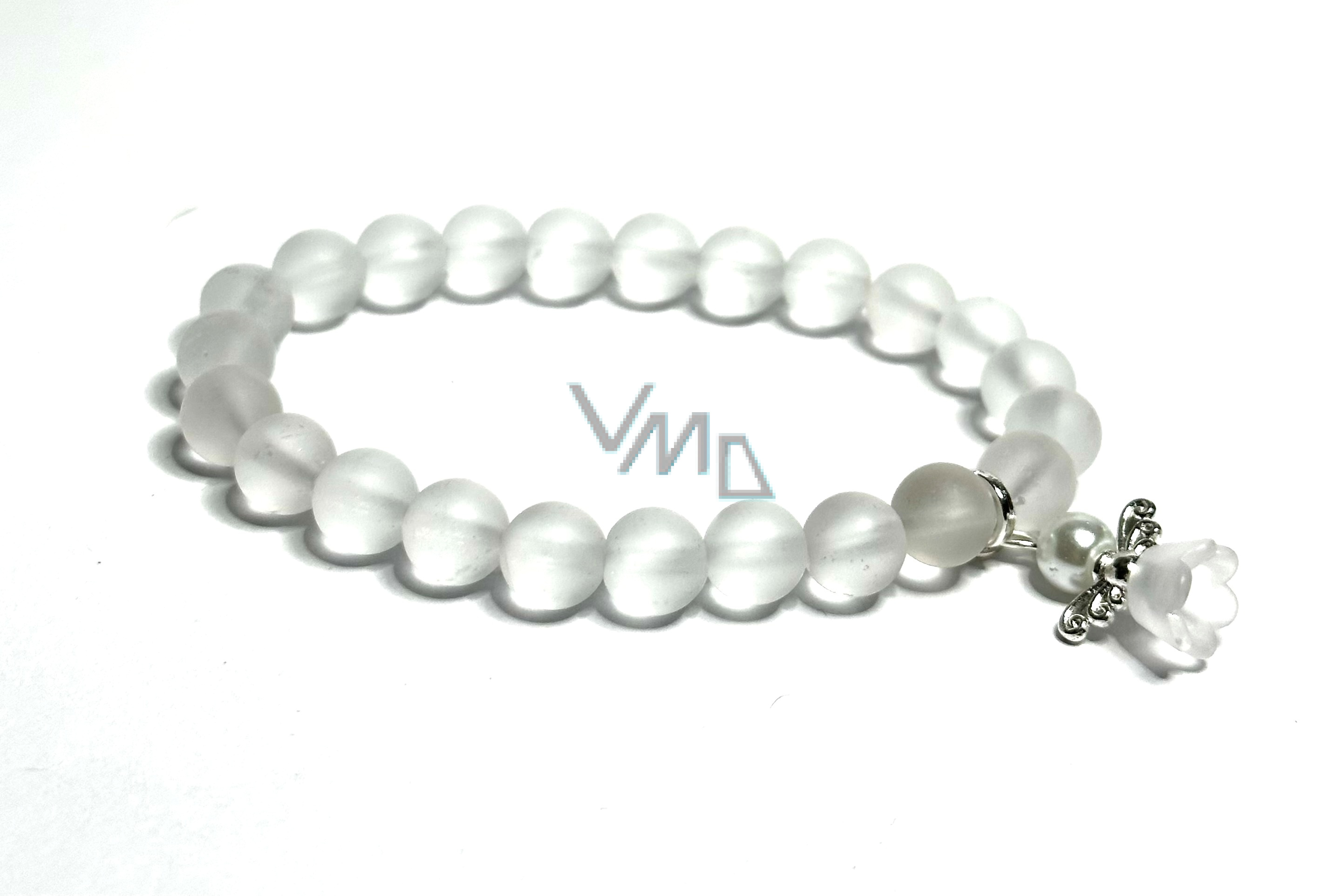 Křišťál matný + Anděl odnimatelný přívěsek, náramek elastický přírodní kámen, kulička 8 mm / 16 - 17 cm, kámen kamenů