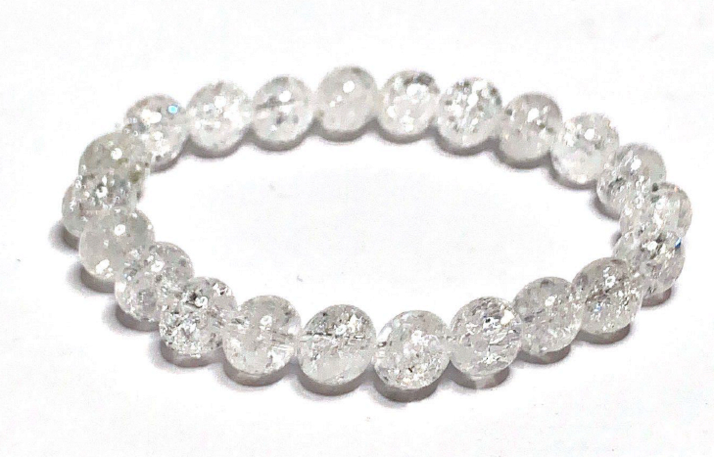 Křišťál pukaný náramek elastický přírodní kámen, kulička 8 mm / 16 - 17 cm, kámen kamenů