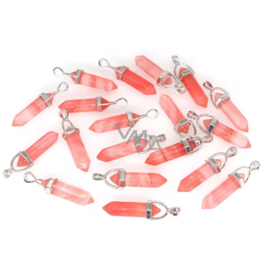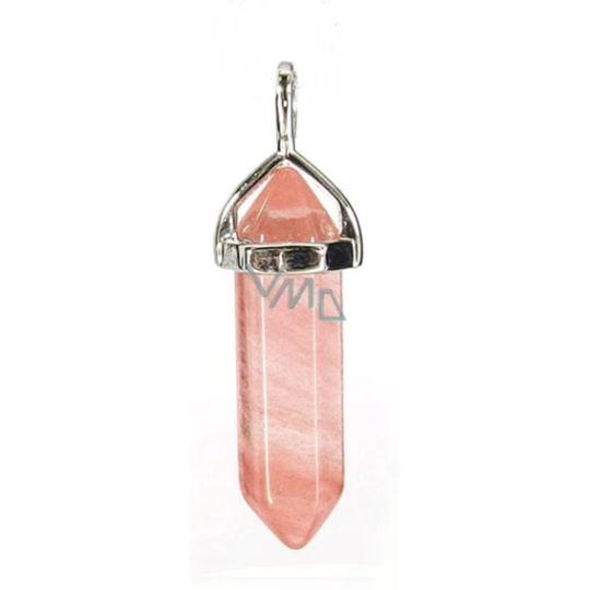 Křišťál růžový Kyvadlo šestihran přívěsek přírodní kámen 41 x 13 mm, kámen kamenů