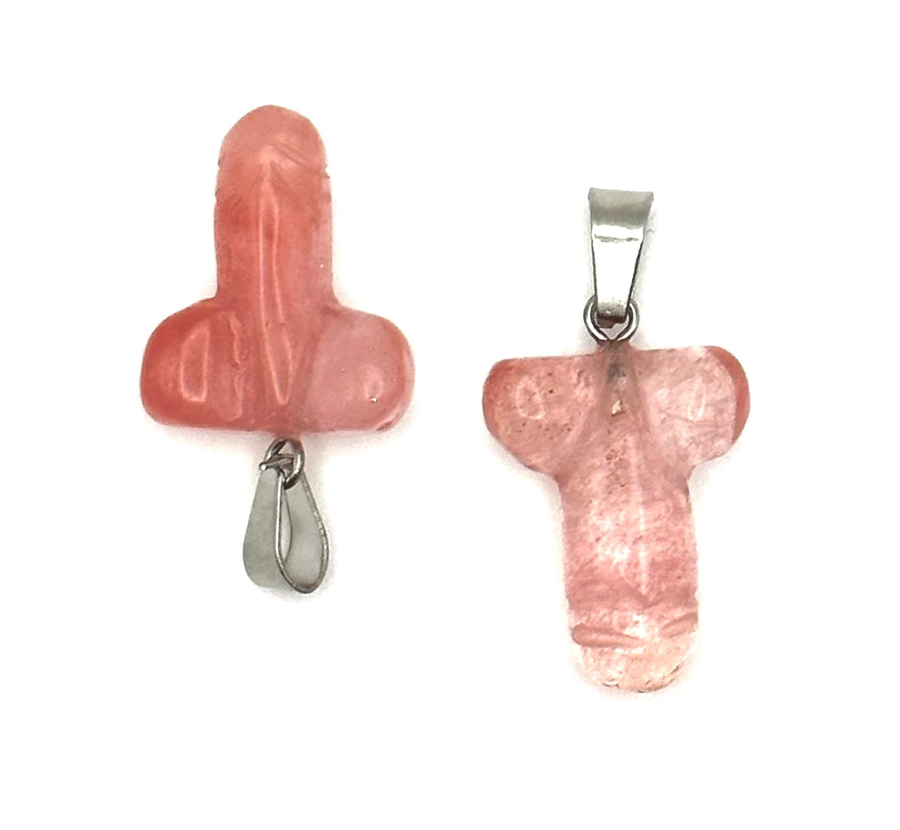 Křišťál růžový Penis pro štěstí, přívěsek ručně broušený cca 11 x 22 mm, kámen kamenů