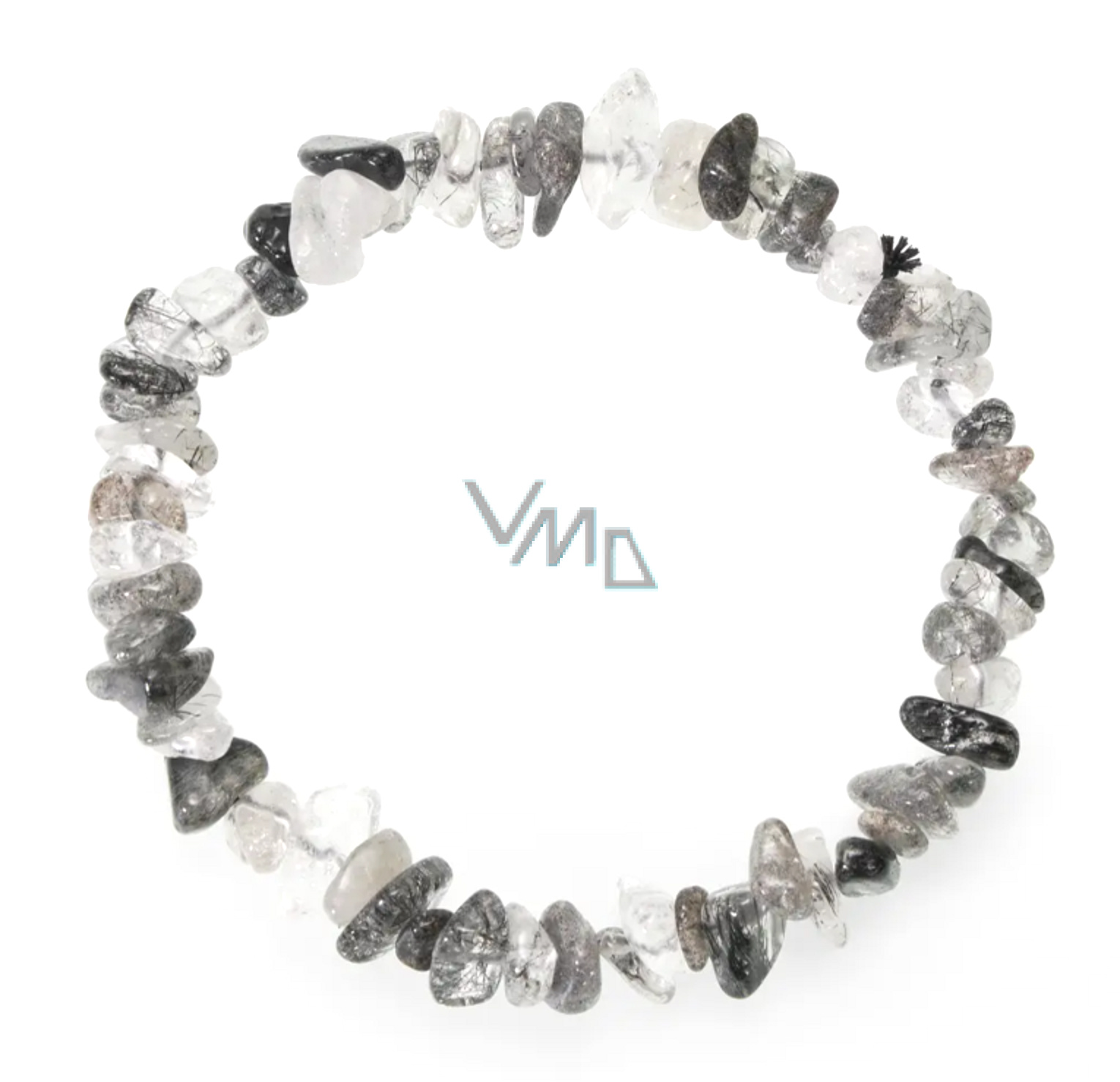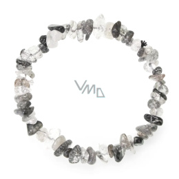 Křišťál s Turmalínem náramek elastický sekaný přírodní kámen 19 cm, kámen kamenů