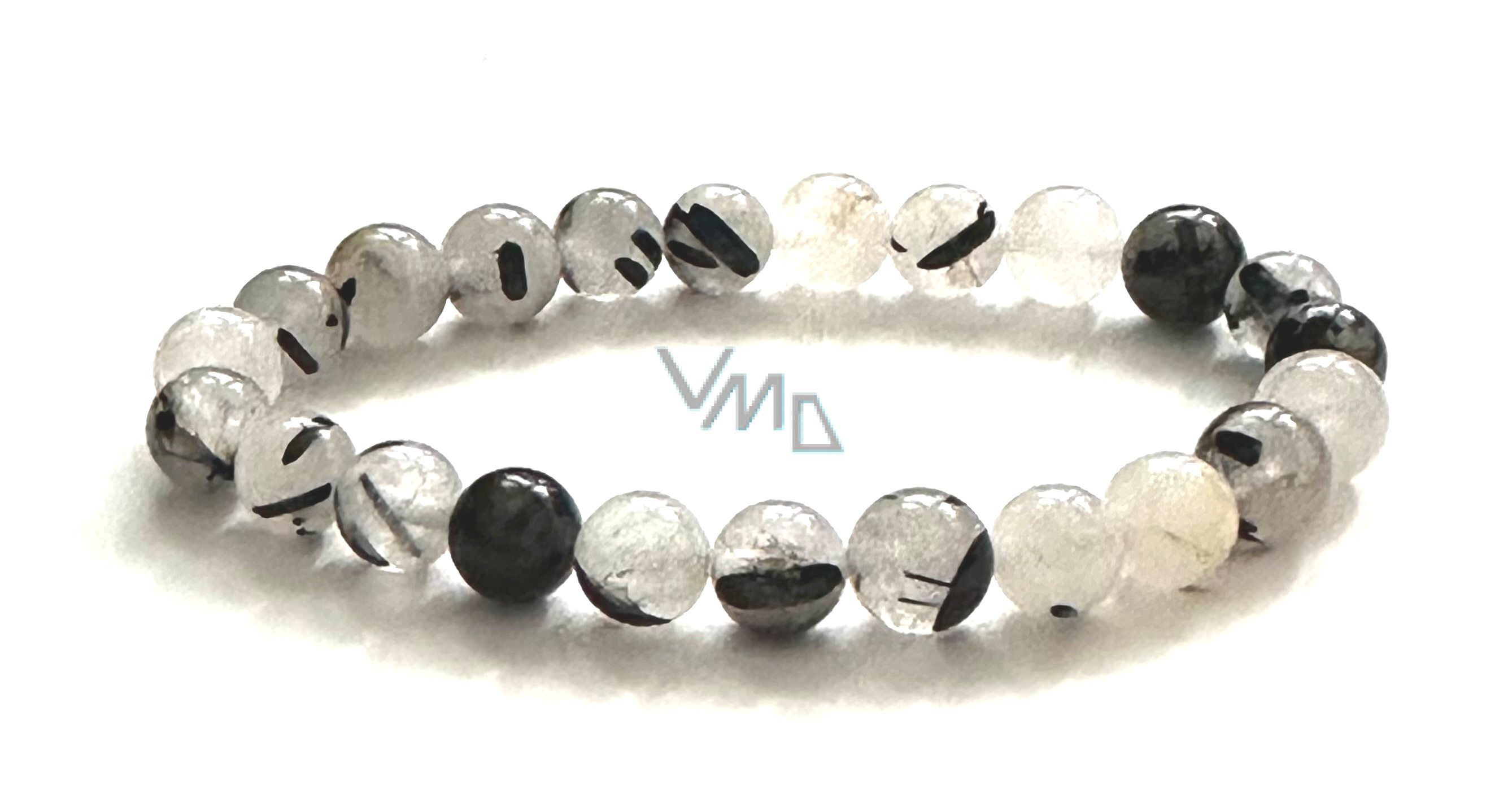 Křišťál s Turmalínem náramek elastický z přírodního kamene, kulička 8 mm / 16 - 17 cm, kámen kamenů