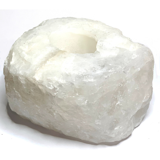 - Svícen pocházející ze surového neleštěného křišťálu.