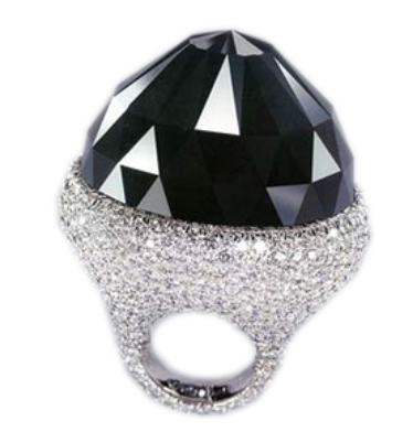 - Spirit of de Grisogono - Spirit of de Grisogono je se svými 312.24 největším černým broušeným diamantem na světě. Na obrázku je zasazen do bílého zlata s 702 bílými diamanty které samy o sobě váží dalších 36.69 karátů. Původní kámen měl 587 karátů a byl nalezen před několika desítkami let ve střední Africe. Své jméno dostal po slavném švýcarském klenotníkovi.