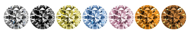 - Kromě bezbarvých diamantů nacházíme diamanty skoro ve všech spektrech barevnosti - hnědé, nazývané také šampaňské nebo čokoládové diamanty, a vzácné zelené, modré, červené, oranžové, černé, žluté a růžové diamanty. Přírodní červené, fialové a růžové diamanty patří mezi nejvzácnější a nejcennější ze všech diamantů. Většina diamantů ve šperkařství je ale téměř bezbarvá, případně velmi světle žlutá nebo hnědá.