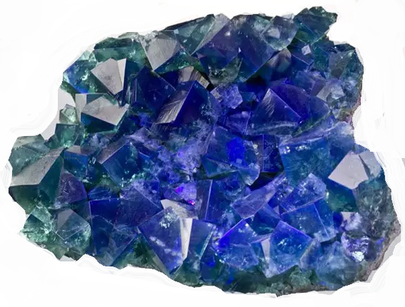 - purpurový, zelený fluorit, průsvitný, krychlový nebo osmistěn