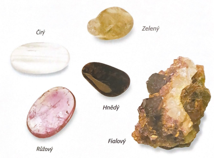 BARVA A ODRŮDA: krystal má obrovskou škálu odstínů s duhovými odstíny: růžová a načervenalá, žlutá, modrá, fialová, modročerná. Jedná se o jedinečnou barevnou paletu, přičemž je průhledná nebo průsvitná.