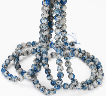 BARVA: nově objevený kámen v stříbřitě šedé barvě jsou dokonale označené modré, nebo zelené tečky - flíčky - kruhové koule, krystal K2 má téměř nadpozemský vzhled