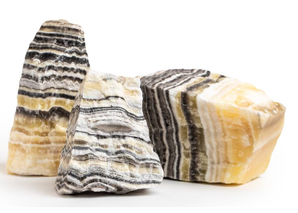 - modrý, zelený, žlutý, oranžový kalcit, průsvitný, na dotek jakoby voskový, často pruhovaný, někdy ošetřený kyselinou pro vylepšení barvy, může být obroušený a může být ošetřen kyselinou, aby se zvýraznila jeho barva