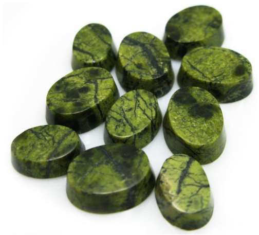 - Vernantit. Tmavě zelená obsahuje ve své struktuře lesklé žíly kalcitu a má tmavě zelenou barvu.