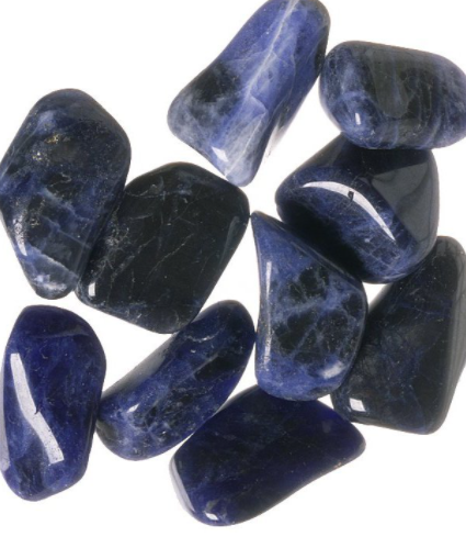 Sodalit je tmavě modrý kámen, který obsahuje bílé kousky kalcitu. Může se snadno zaměnit, s mystickým lapisem lazuli, protože také obsahuje pyrit, ale nemá zlaté záblesky, které mívá lapis.