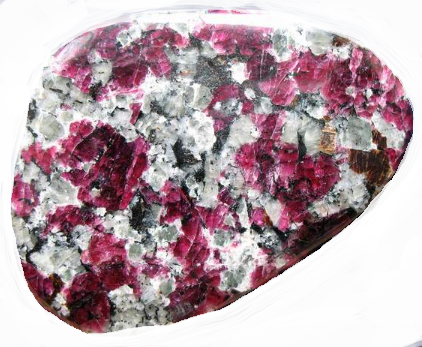 - Nefelínské syenity jsou bílé, našedlé, načervenalé a nazelenalé, velmi připomínající žulu s mnoha složkami: živcem draselným, zrnitým nefelinem, titanem, enigmatitem, chlorem, fluórem, fosforem a barevnými kovy, které určují barvu kamene. Je to zásaditá dotěrná hornina.