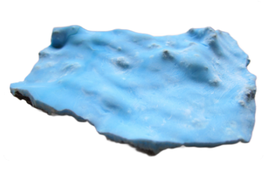 Velmi křehké kameny modrobílé barvy s pórovitými stěnami a zaoblenými konci, připomínající korály.