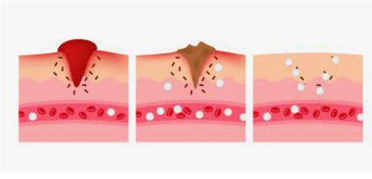Hojení akutních ran probíhá v několika fázích, které na sebe navazují a překrývají se. Fáze první, exsudativní, začíná hned ve chvíli poranění. Rána se začne čistit, spustí se kaskáda pro zastavení krvácení. Poté proces přechází do proliferační fáze, kdy pozorujeme růst nové tkáně a nových cév.
