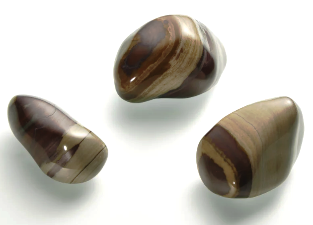- hnědý jaspis, neprůhledný, vzorovaný, může být obrušovaný