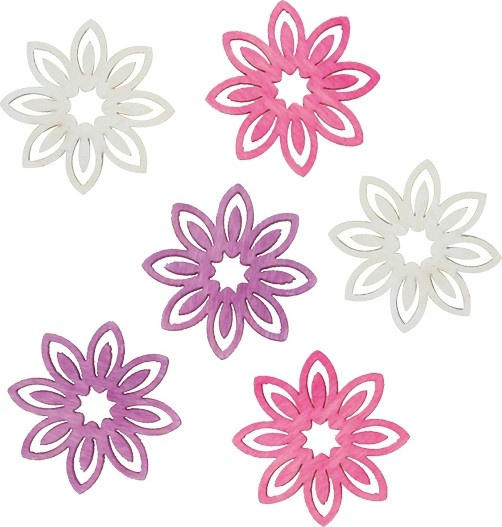 Květy dřevěné bílo-růžovo-fialové 6 cm 6 kusů