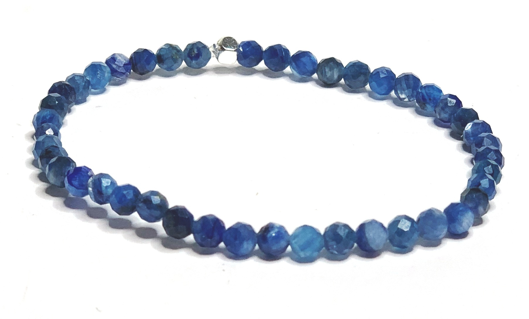 Kyanit modrý fazet náramek elastický přírodní kámen, kulička 4 mm / 16 - 17 cm, kámen propojení