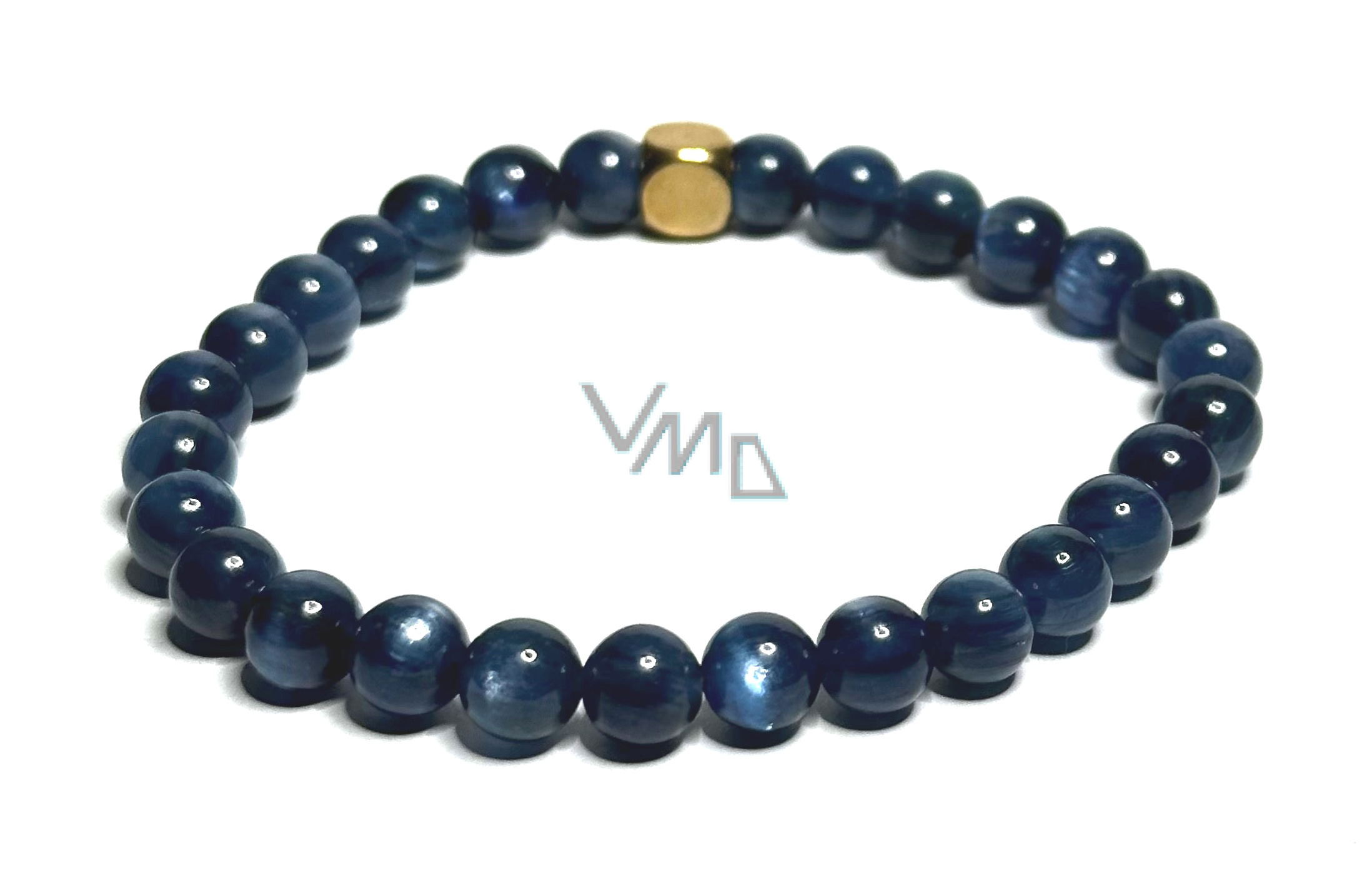 Kyanit modrý náramek elastický přírodní kámen, kulička 6 mm / 16 - 17 cm, kámen propojení