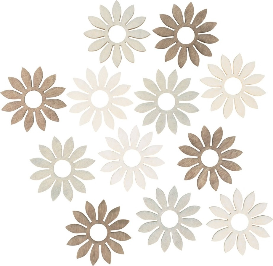 Kytka dřevěná béžovo-hnědá 4 cm 12 kusů