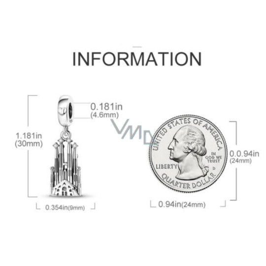Charm Sterlingové stříbro 925 Barcelona La Sagrada Familia, přívěsek na náramek cestování