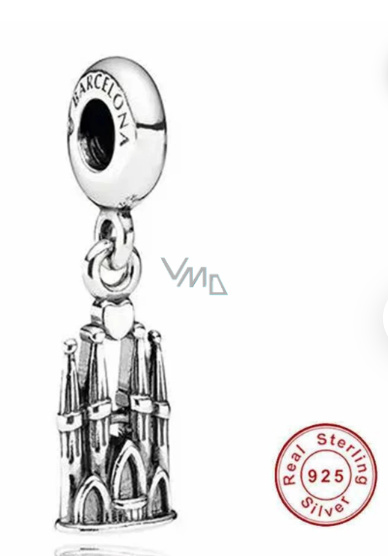 Charm Sterlingové stříbro 925 Barcelona La Sagrada Familia, přívěsek na náramek cestování