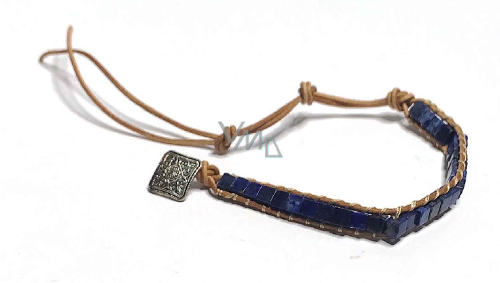 Lapis Lazuli kožený náramek přírodní kámen, ručně vyráběný, zapínací, čtvercový 4 x 4 mm / 14 + 6,5 mm, kámen harmonie