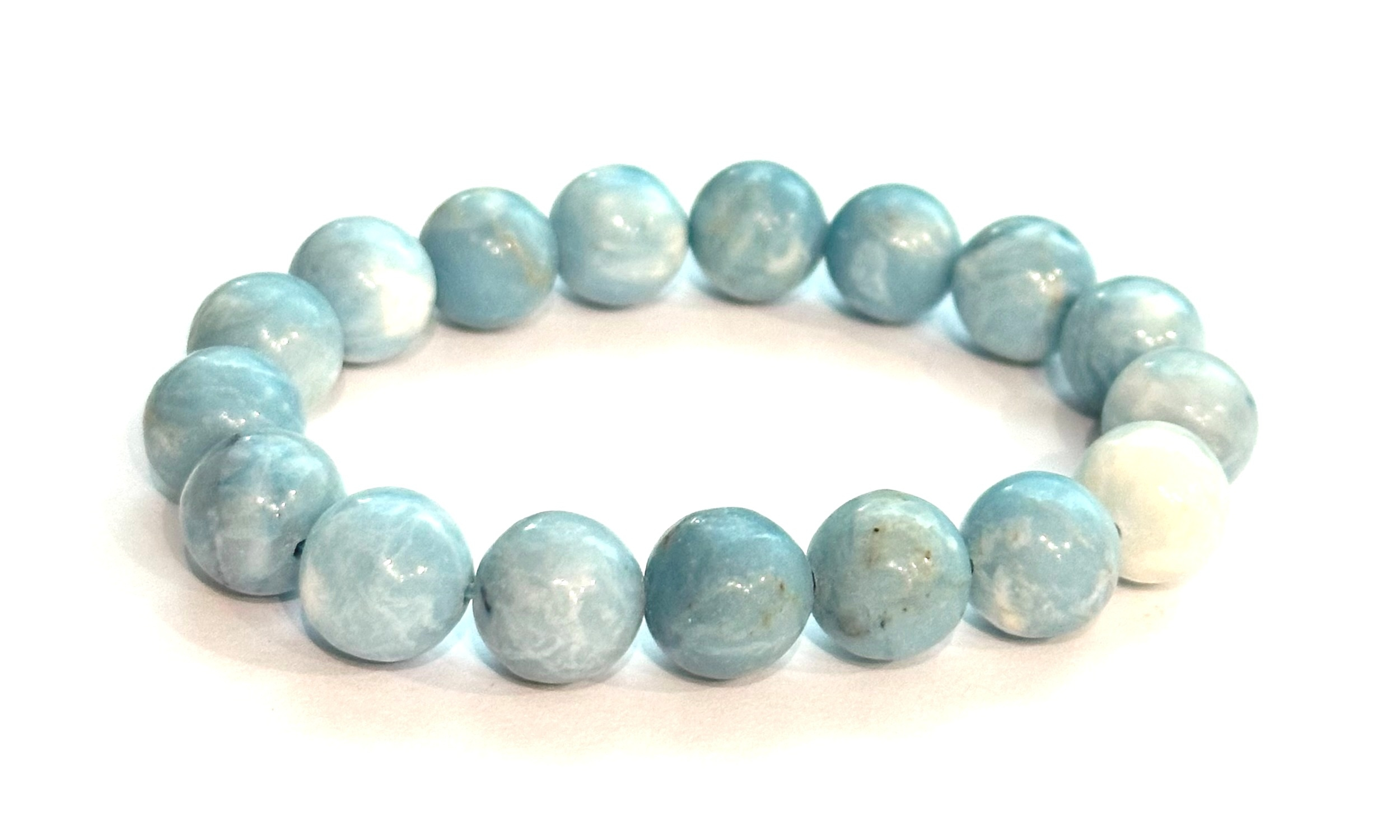 Larimar náramek elastický přírodní kámen, 11 / 12 mm / 16 - 17 cm, klid - mír - vyrovnanost