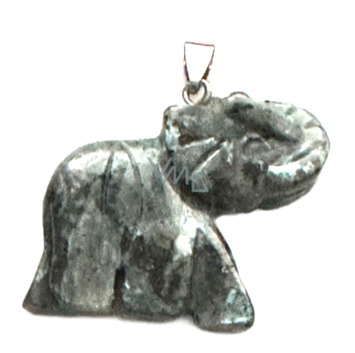 Larvikit Slon přívěsek přírodní kámen, ručně broušená figurka 32 x 45 mm, kámen vitality