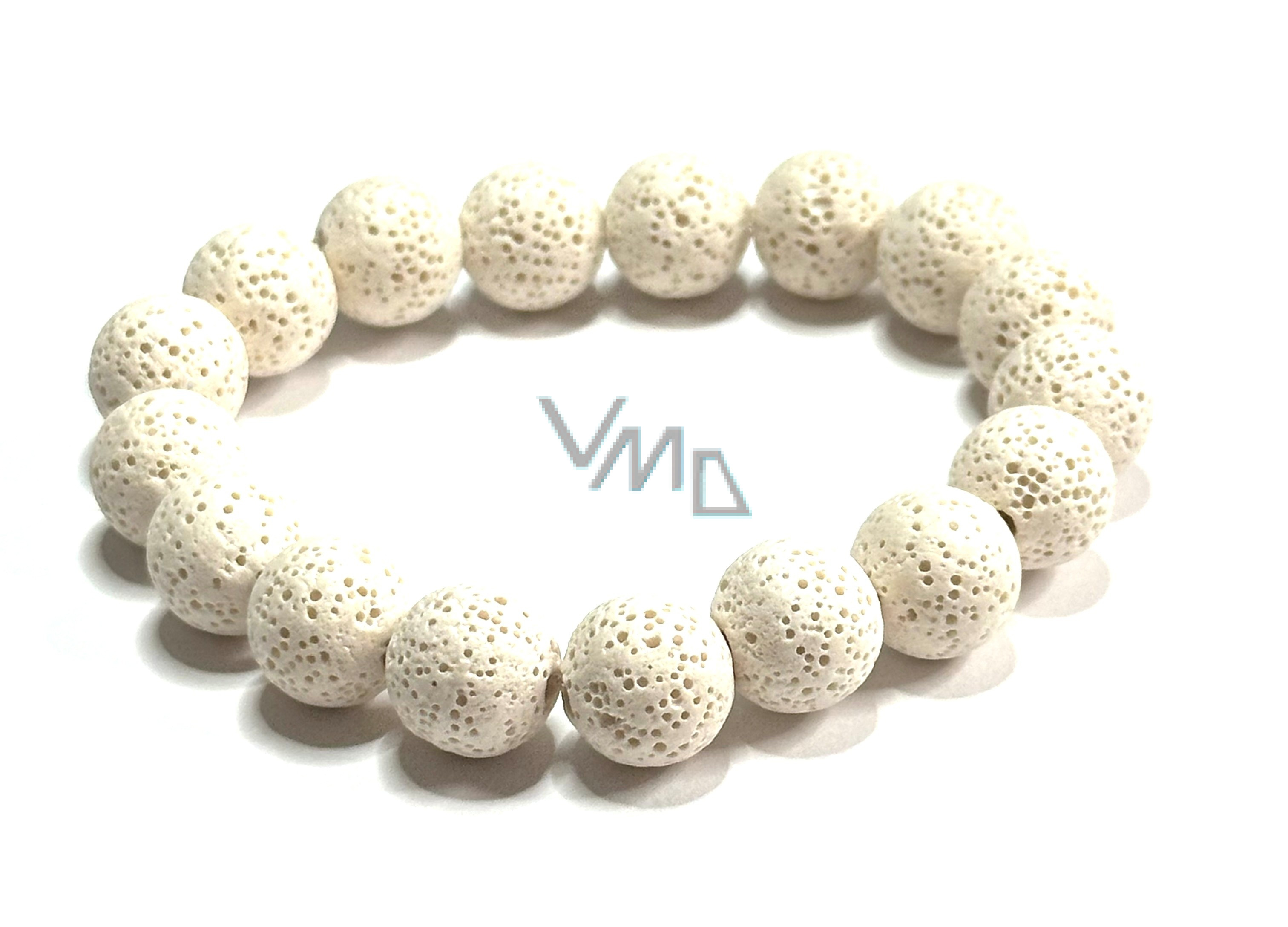 Láva bílá náramek elastický přírodní kámen, kulička 12 mm / 16 - 17cm, zrozen ze čtyř živlů