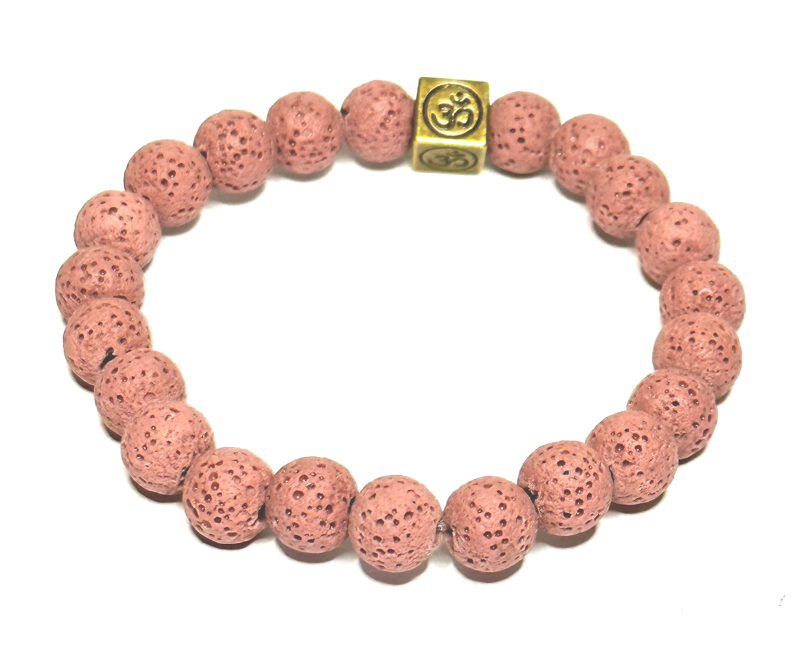 Láva růžový s královskou mantrou Óm, náramek elastický přírodní kámen, kulička 8 mm / 16 - 17 cm, zrozen ze čtyř živlů