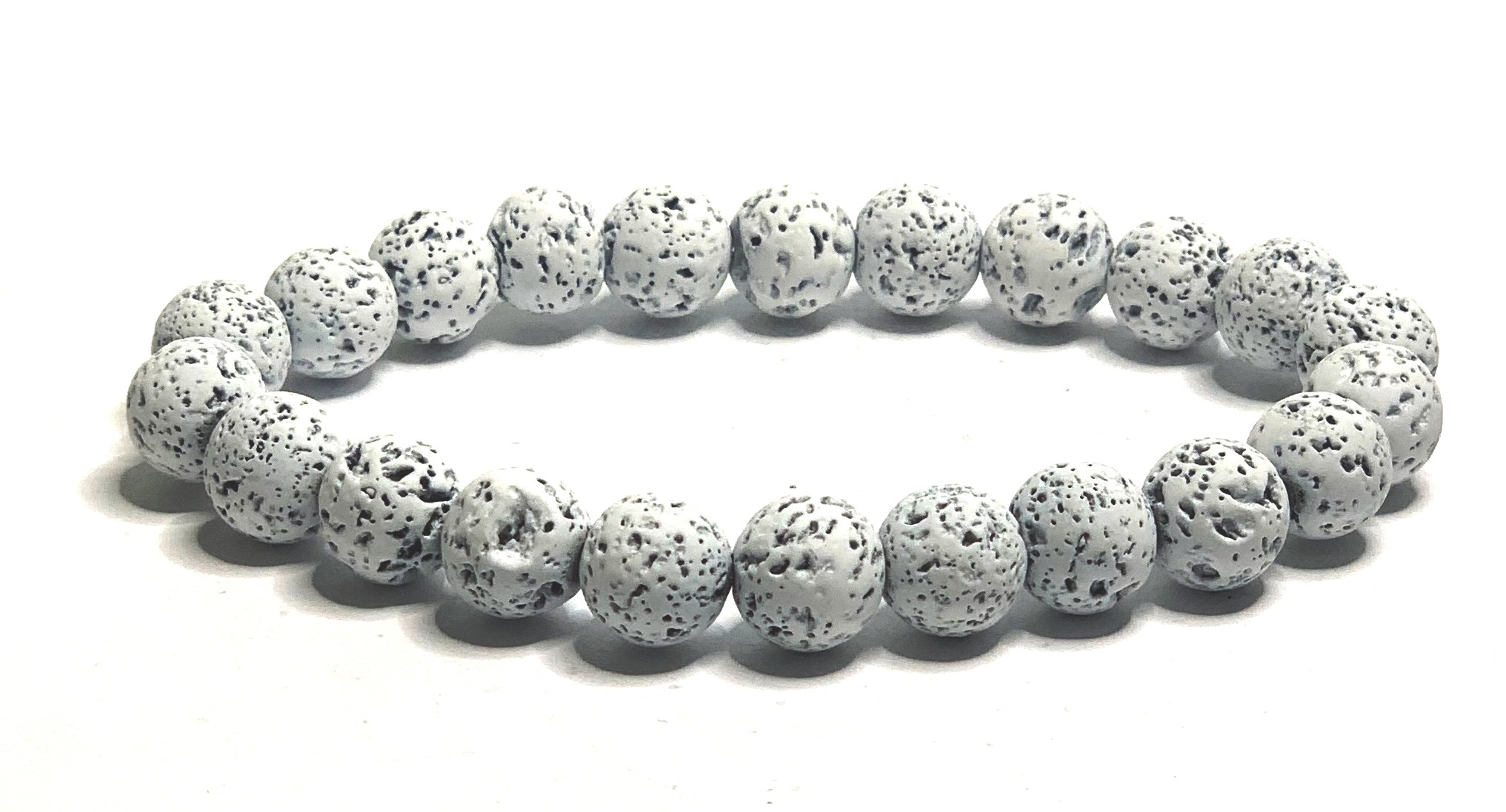 Láva bílá náramek elastický přírodní kámen, kulička 8 mm / 16 - 17 cm, zrozen ze čtyř živlů