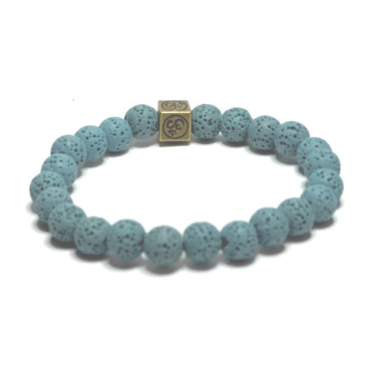 Láva světle modrá s královskou mantrou Óm, náramek elastický přírodní kámen, kulička 8 mm / 16 - 17 cm, zrozen ze čtyř živlů