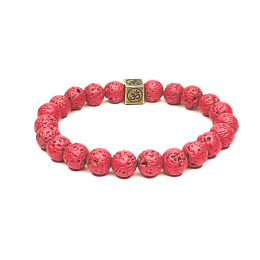 Láva světle červená s královskou mantrou Óm, náramek elastický přírodní kámen, kulička 8 mm / 16 - 17 cm, zrozen ze čtyř živlů
