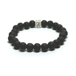 Láva tmavě šedá s královskou mantrou Óm, náramek elastický přírodní kámen, kulička 8 mm / 16 - 17 cm, zrozen ze čtyř živlů