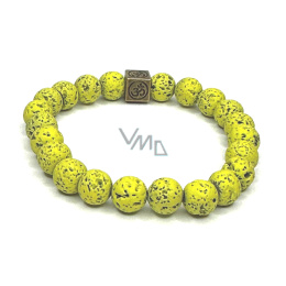 Láva žluto-zelená s královskou mantrou Óm, náramek elastický přírodní kámen, kulička 8 mm / 16 - 17 cm, zrozen ze čtyř živlů