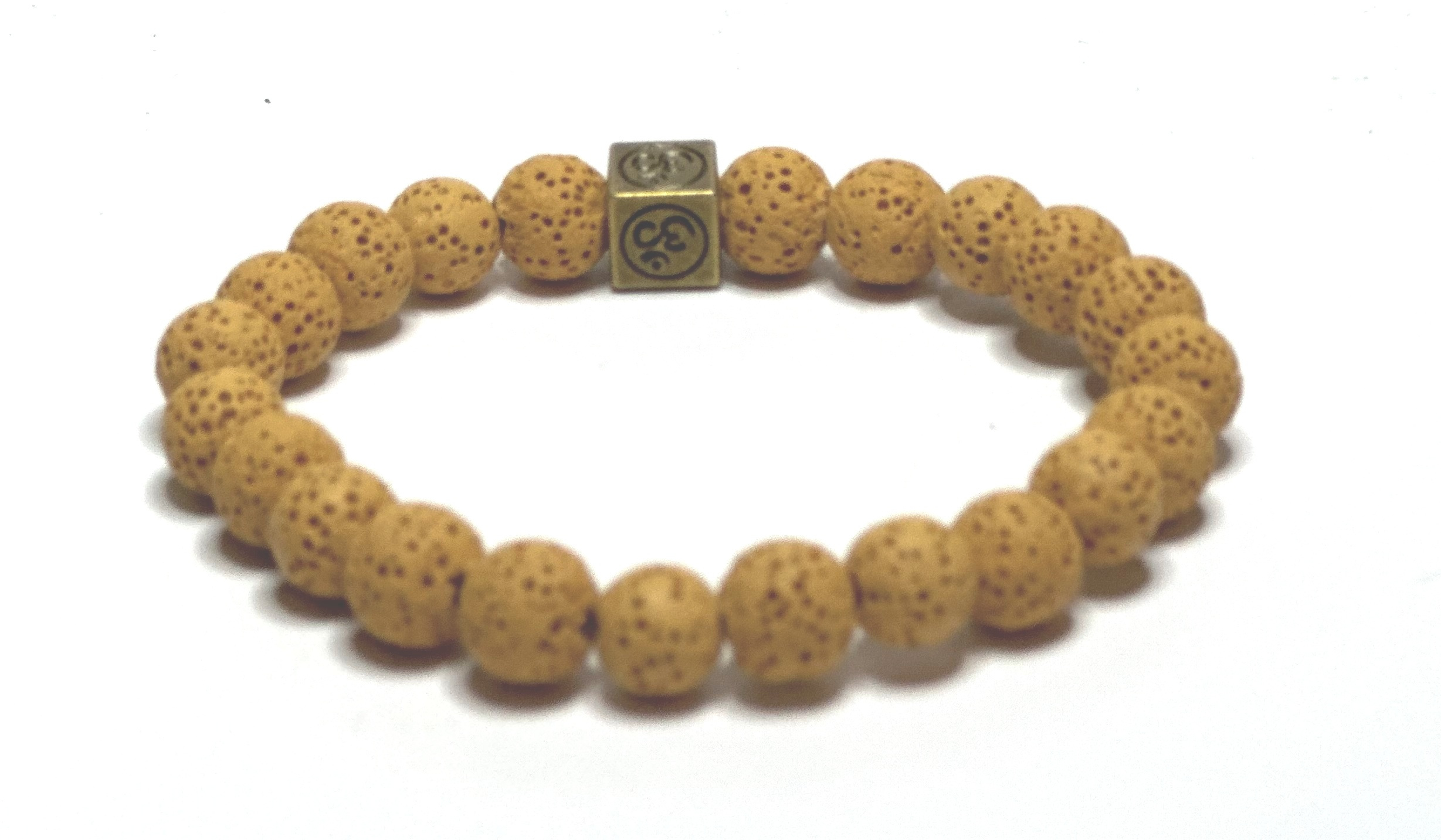 Popis Láva žlutá s královskou mantrou Óm, náramek elastický přírodní kámen, kulička 8 mm / 16 - 17 cm, zrozen ze čtyř živlů