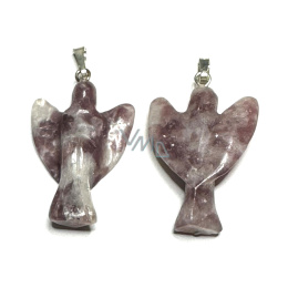 Lepidolit Anděl ochránce přívěsek přírodní kámen 31 mm, amulet sportovců