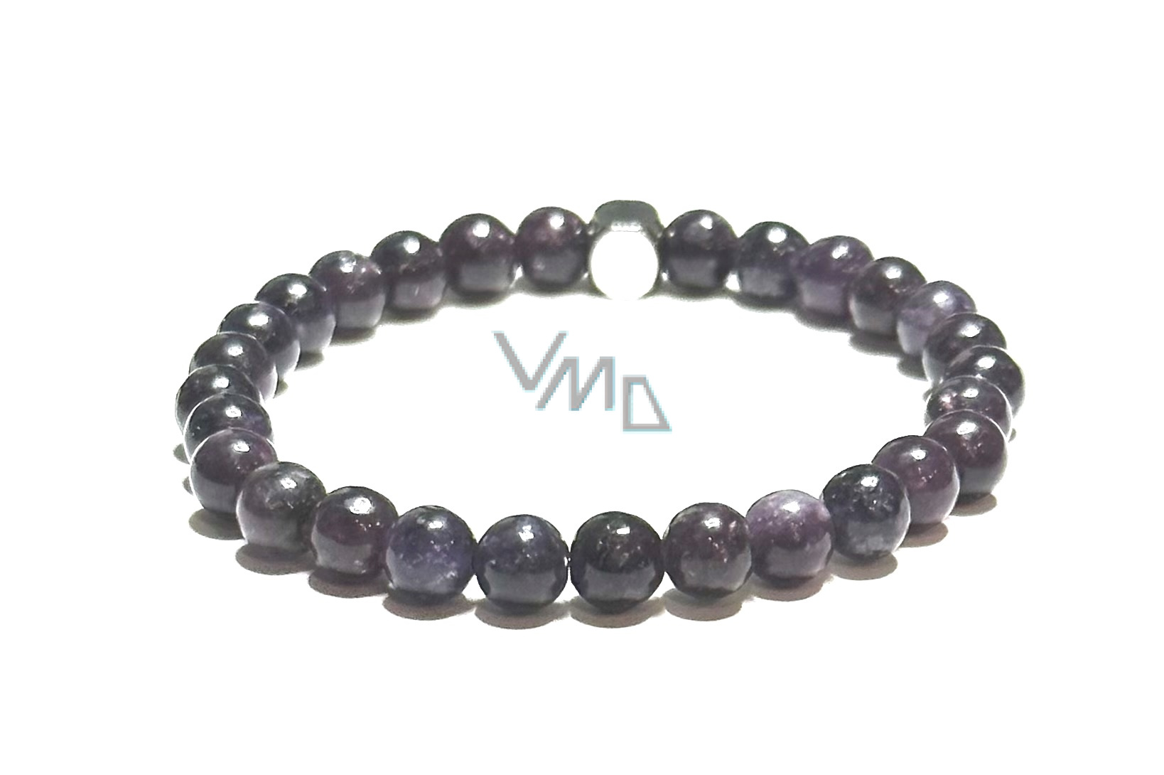 Lepidolit tmavě fialový náramek elastický přírodní kámen, kulička 6 mm / 16 - 17 cm, amulet sportovců