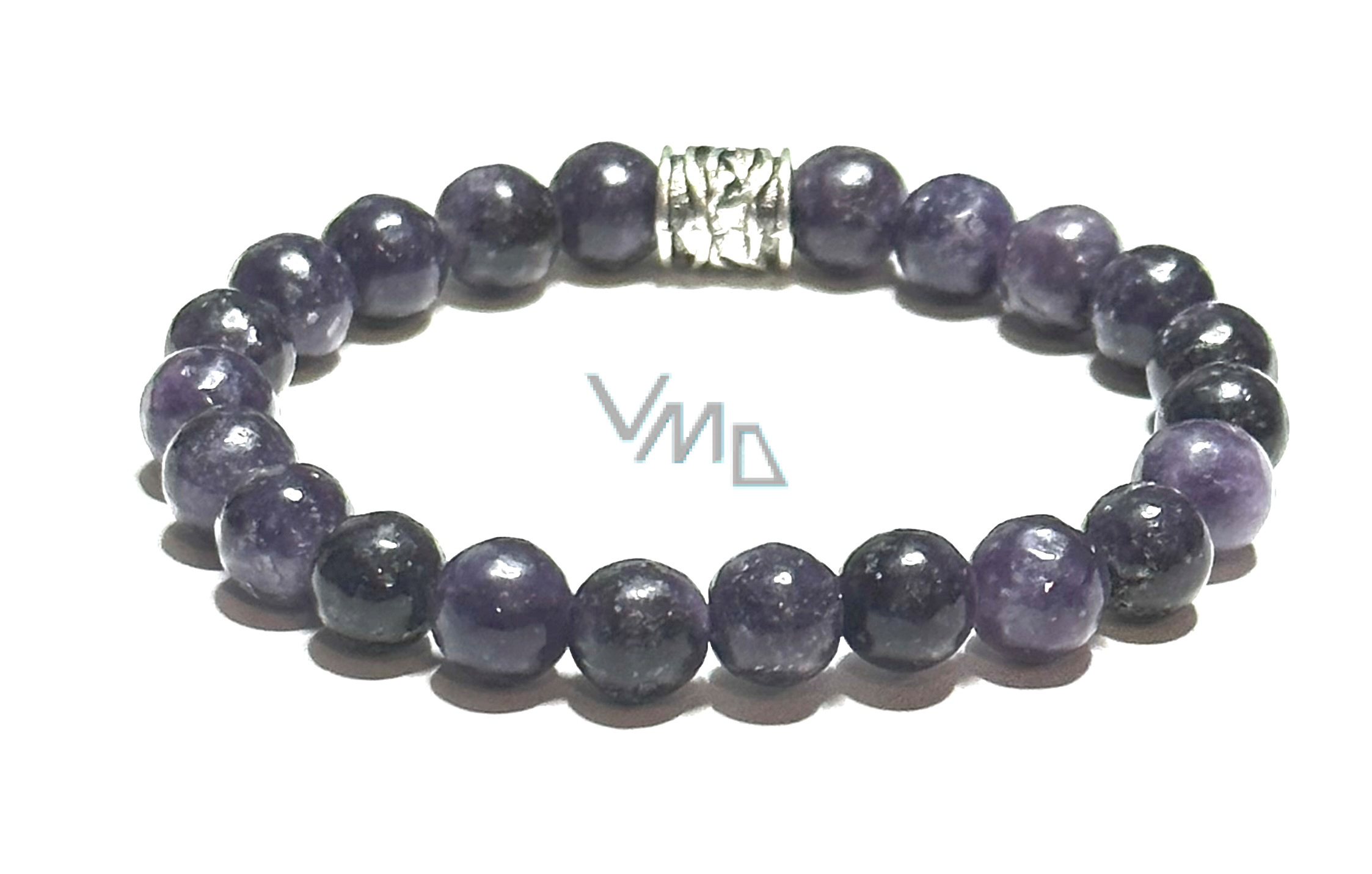 Lepidolit tmavě fialový náramek elastický přírodní kámen, kulička 8 mm / 16 - 17 cm, amulet sportovců